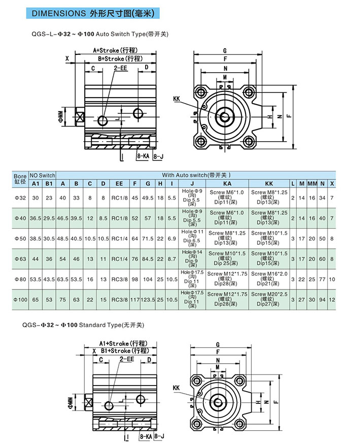 QGS-20,QGS-25,QGS-32,QGS-40,QGS-L-50,QGS-L-63,QGS-L-80,QGS-L-100,QGS-20-5,