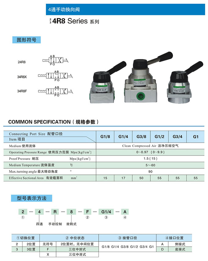 34R8X-G1/8,34R8X-G1/4,34R8X-G3/8,34R8X-G1/2,34R8X-G3/4,34R8X-G1,34R8X-G1/8-A,4通手動(dòng)換向閥