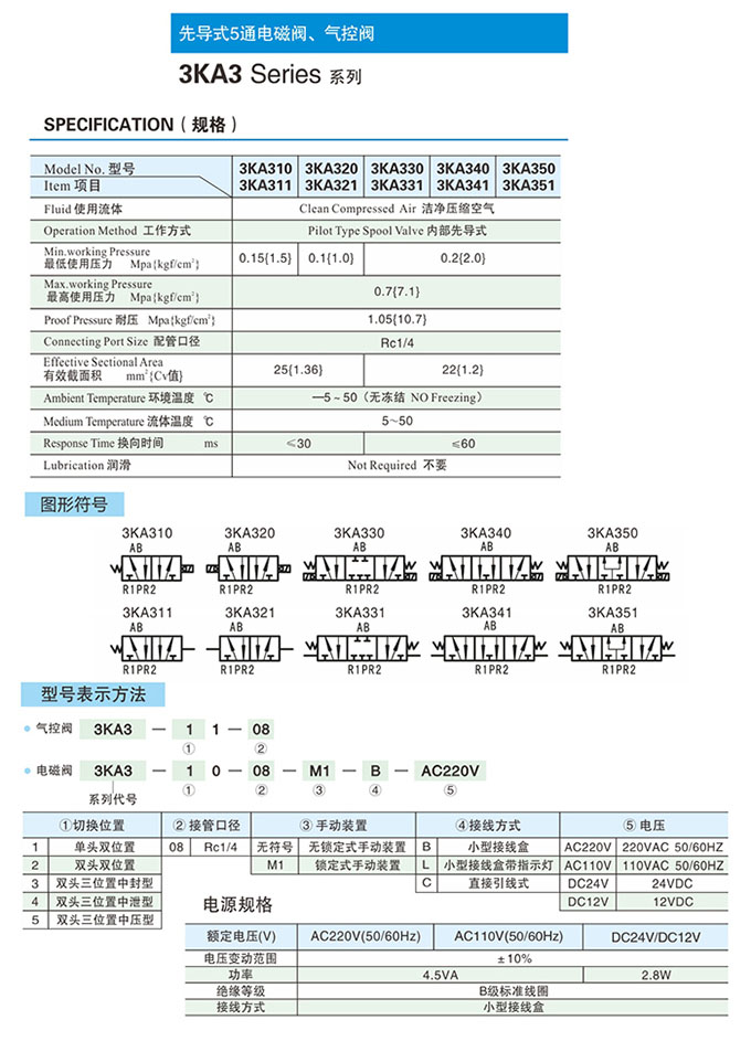 3KA311-08,3KA321-08,3KA331-08,3KA341-08,3KA351-08,先導式五通氣控閥