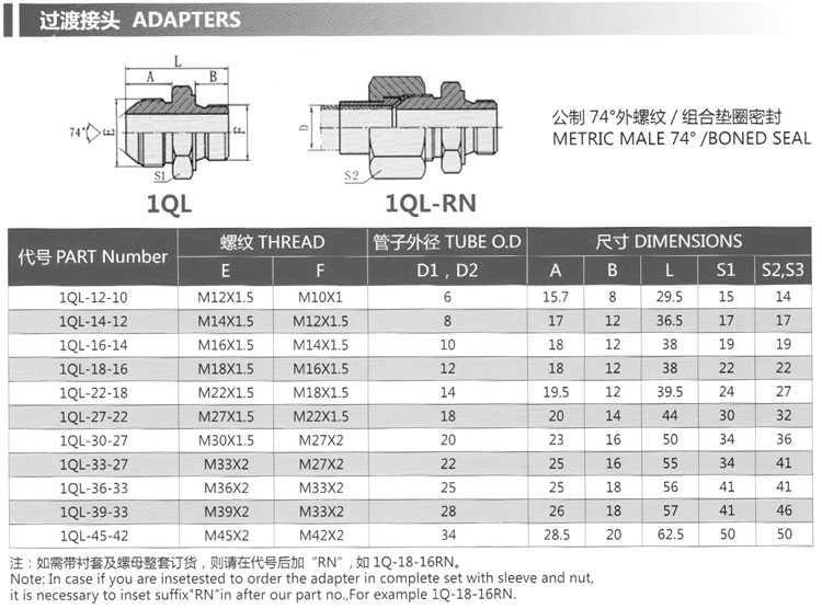 1QL-12-10,1QL-18-16,1QL-22-18,1QL-27-22,1QL-30-27,1QL-33-27,1QL-45-42,過渡接頭