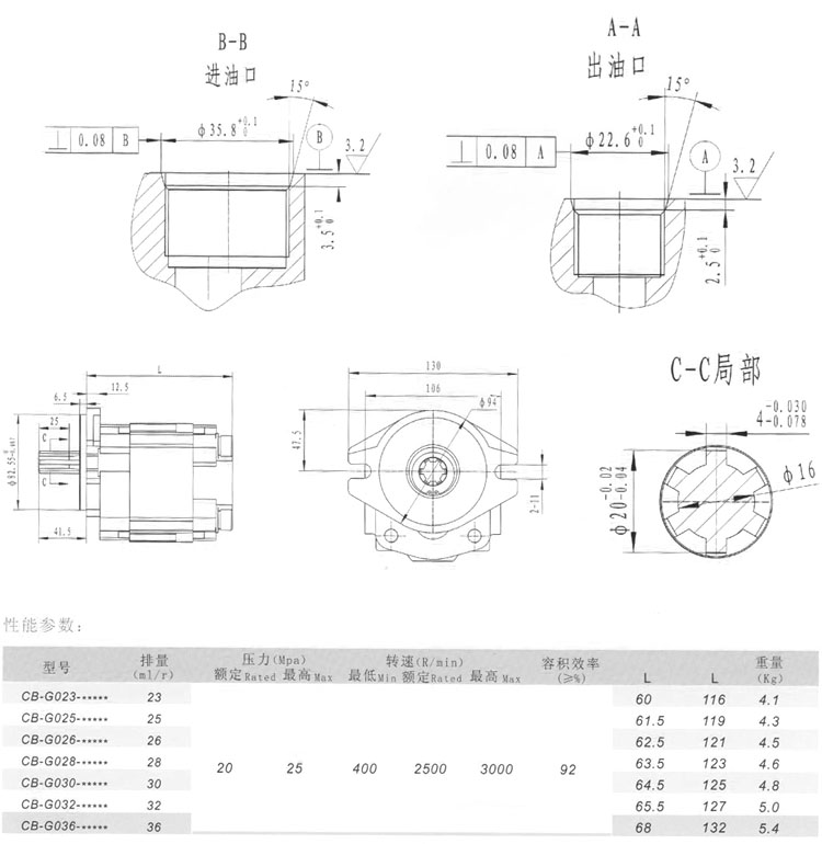 CB-G023-PAFS01,CB-G025-PAFN01,CB-G026-PTFS01,CB-G028-PTFN01,齒輪油泵