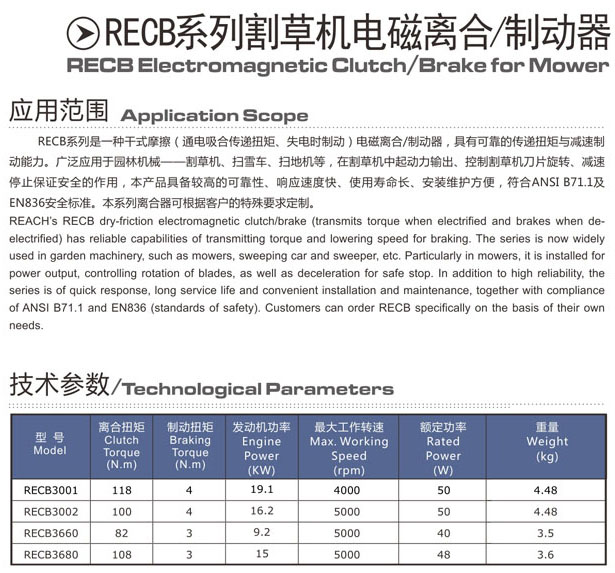 RECB3001,RECB3002,RECB3660,RECB3680,割草機(jī)電磁離合制動器 |