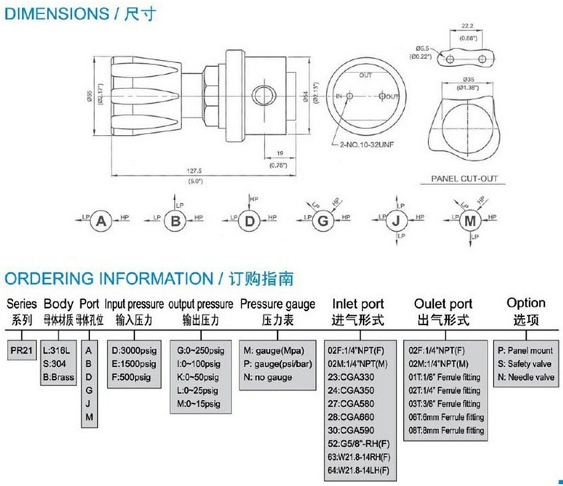 PR21LA-D-G-M,PR21BB-D-I-M,PR21SD-E-K-M,PR21BG-E-L-M,PR21BJ-F-M-M,減壓閥