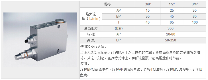 HYVABP 3/8",HYVABP 1/2",HYVABP 3/4",雙泵高低流量卸荷閥