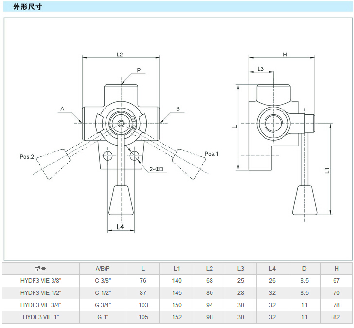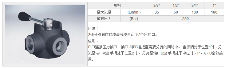 HYDF3 VIE 3/8",HYDF3 VIE 1/2",HYDF3 VIE 3/4",HYDF3 VIE 1",3位3通分流閥 |
