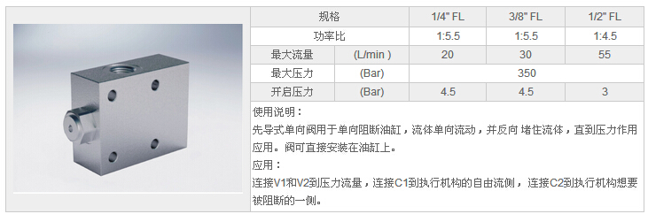 HYVBPSE 1/4" FL,HYVBPSE 3/8" FL,HYVBPSE 1/2" FL,單先導(dǎo)式單向閥