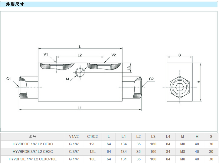 HYVBPDE 1/4" L2 CEXC,HYVBPDE 3/8" L2 CEXC,HYVBPDE 1/4" L2 CEXC-10L,先導(dǎo)式雙單向閥 |