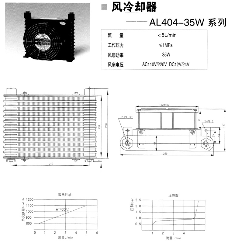 AL404-35W,風(fēng)冷式油冷卻器