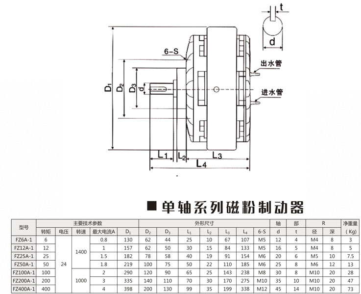 FZ6K-1,FZ12K-1,FZ25K-1,FZ50K-1,FZ100K-1,FZ200K-1,FZ400K-1,單軸磁粉制動器