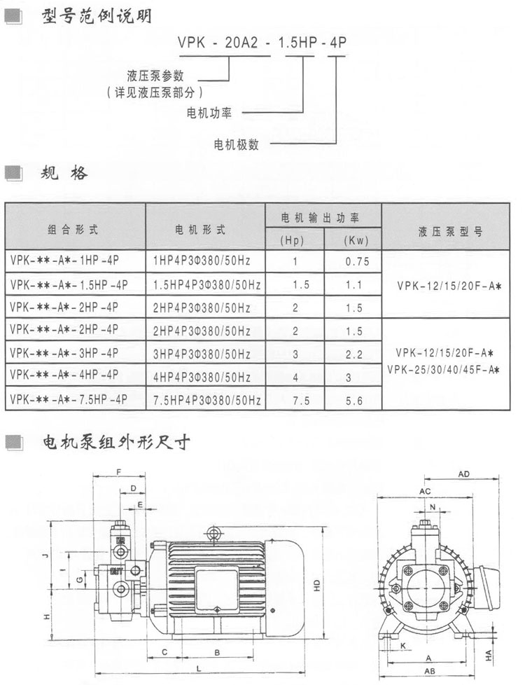 VPK-12F-A1-1HP-4P,VPK-12F-A2-1.5HP-4P,VPK-12F-A3-2HP-4P,變量葉片泵電機(jī)泵組