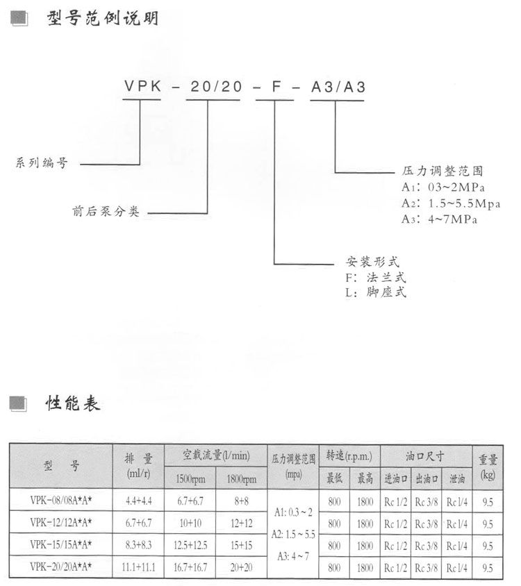VPK-25/25FA1/A1,VPK-25/25LA3/A3,VPK-25/25LA1/A1,VPK-40/40FA2/A2,變量葉片泵