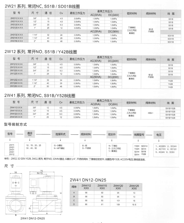 2W11,2W31,2W21,2W12,2W41,2W1112,2W3112,2W2112,2W1212,2W4112,直拉膜片式電磁閥