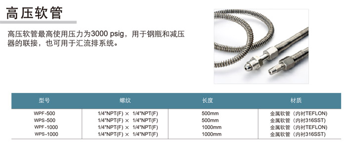 WPF-500,WPS-500,WPF-1000,WPS-1000,高壓軟管