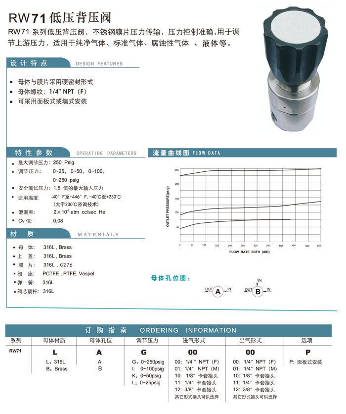 RW71LA,RW71LB,RW71BA,RW71BB,RW71LAG0000,RW71LBG0111,RW71BAG0110,RW71BBG0101,低壓背壓閥