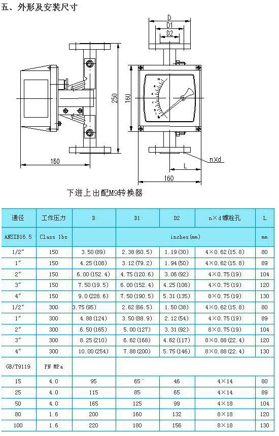 | M9 | 非線性指示器(就地指針顯示瞬時(shí)流量) | |||||||||