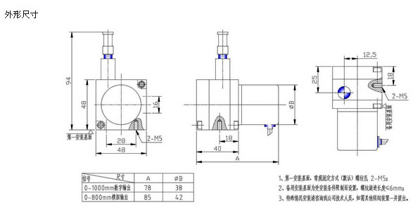 該傳感器屬于微型拉線(繩)位移傳感器,用來記錄測量長度0~1000mm的線性距離、模擬量型和數(shù)字量型輸出,標準化接口,可以堅固耐用特別適合短距離,高分辨率的場合,主要特點:安裝方便,設(shè)有備用安裝基準面,根據(jù)需要多種選擇;安裝空間小,安裝難度低;無需導向。機械公差不影響測量精度;廣泛應(yīng)用于直線導軌系統(tǒng),液壓氣缸系統(tǒng)、伸縮系統(tǒng),倉儲位置定位,壓力機械。造紙機械,紡織機械、金屬板材機械、印刷機械、水平控制儀、建筑機械等相關(guān)尺寸測量和位置控制;可外接PLC二次儀表,單片機等采集系統(tǒng)。