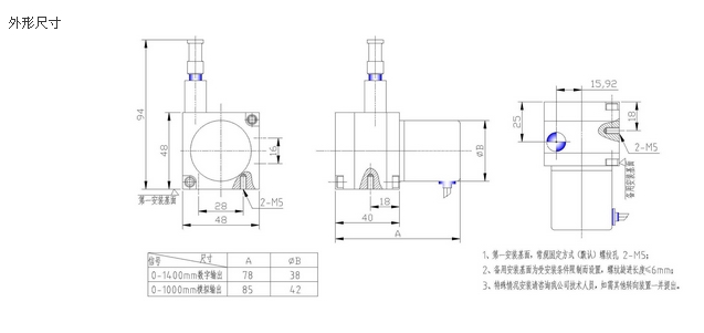 該傳感器屬于微型拉線(繩)位移傳感器,用來記錄測量長度0~1400mm的線性距離、模擬量型和數字量型輸出,標準化接口,可以堅固耐用特別適合短距離,高分辨率的場合,主要特點:安裝方便,設有備用安裝基準面,根據需要多種選擇;安裝空間小,安裝難度低;無需導向。機械公差不影響測量精度;廣泛應用于直線導軌系統(tǒng),液壓氣缸系統(tǒng)、伸縮系統(tǒng),倉儲位置定位,壓力機械。造紙機械,紡織機械、金屬板材機械、印刷機械、水平控制儀、建筑機械等相關尺寸測量和位置控制;可外接PLC二次儀表,單片機等采集系統(tǒng)。