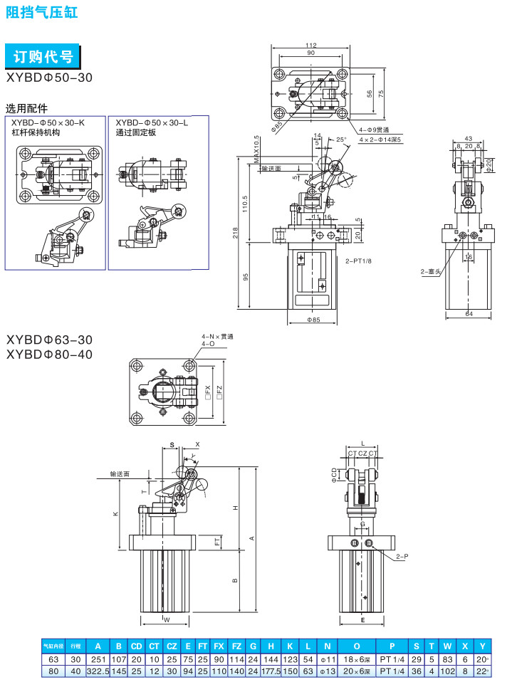 XYBD-32-20,XYBD-50-30,XYBR-20-20,XYBR-32-20,XYBS-20-10,XYBS-50-30,阻擋氣缸 |