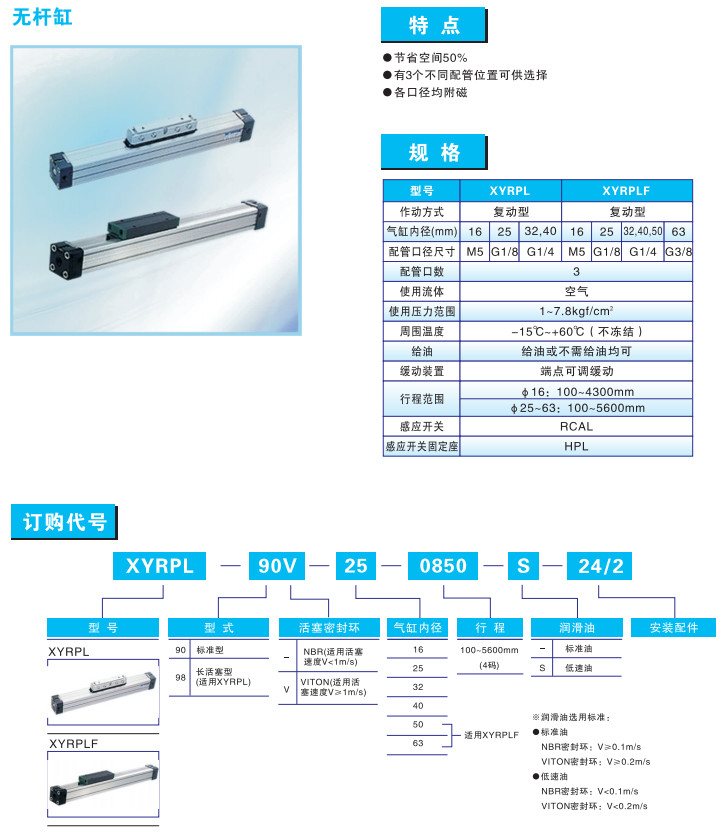 XYRPL-90V-16-0850,XYRPL-98V-25,XYRPLF-90V-32,XYRPL-90V-50,無桿氣缸 |