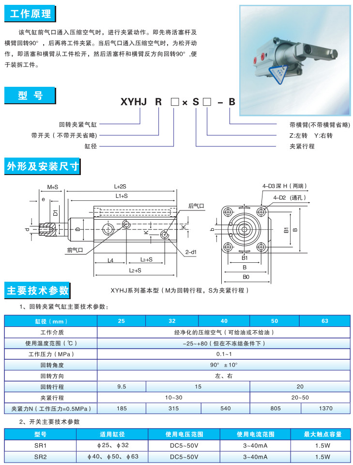 XYHJ25*10Z-B,XYHJ32*30Z-B,XYHJR40*10Z-B,XYHJR50*50Z-B,旋轉(zhuǎn)夾緊氣缸
