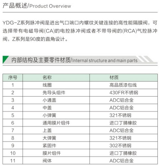 YDA-Y-76,電磁脈沖閥
