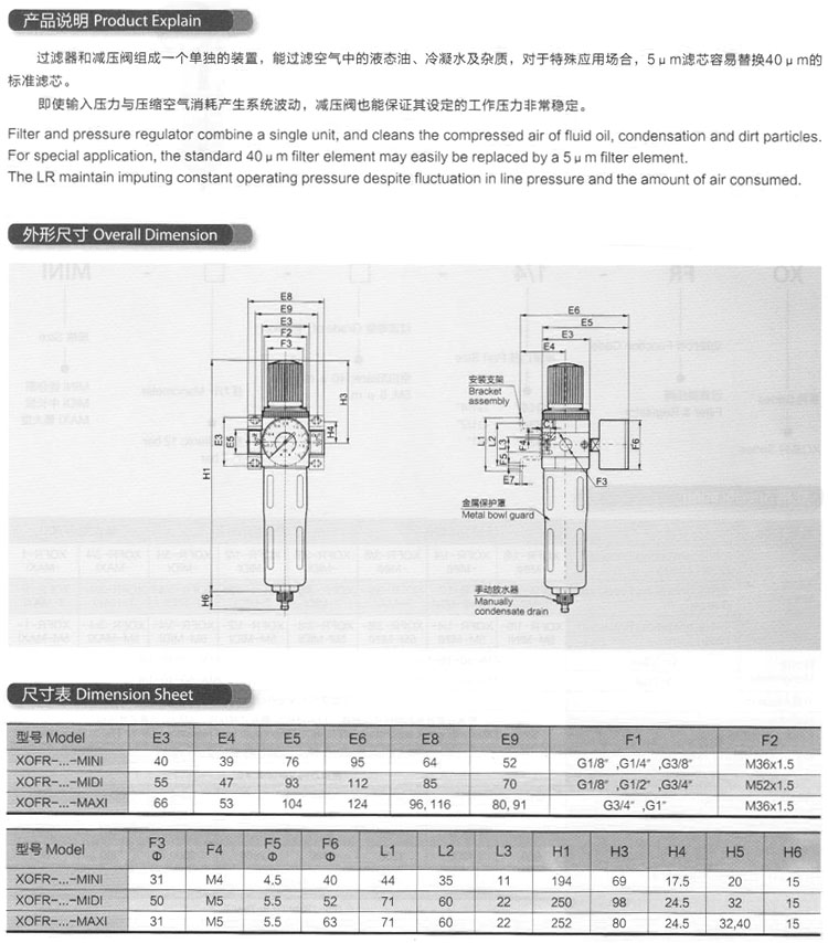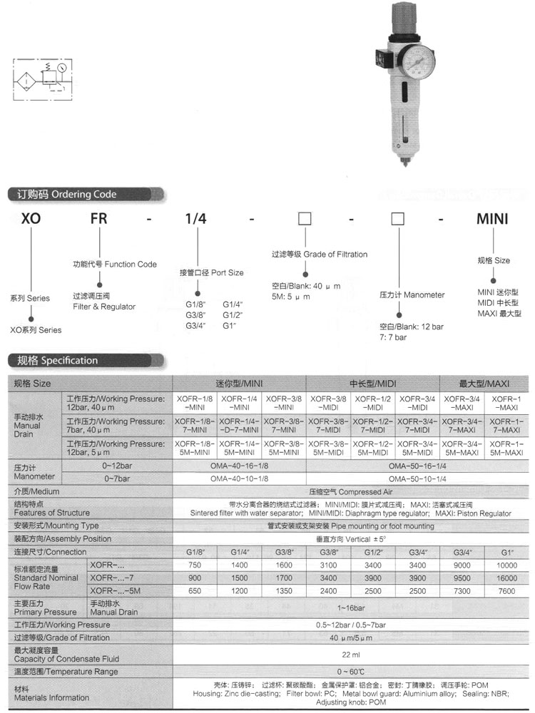 XOFR-1/8-MINI,XOFR-3/8,XOFR-3/4,XOFR-1/4,XOFR-1/2,XOFR-1,過濾調(diào)壓閥