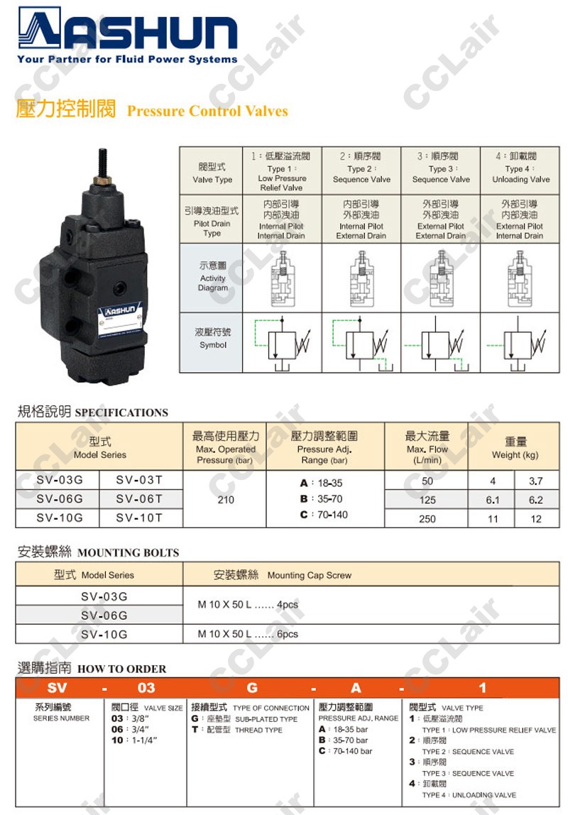 SV-03G,SV-03T,SV-06G,SV-06T,SV-10G,SV-10T,SV-10T-A-1,SV-03T-C-4,SV-10G-C-2,壓力控制閥