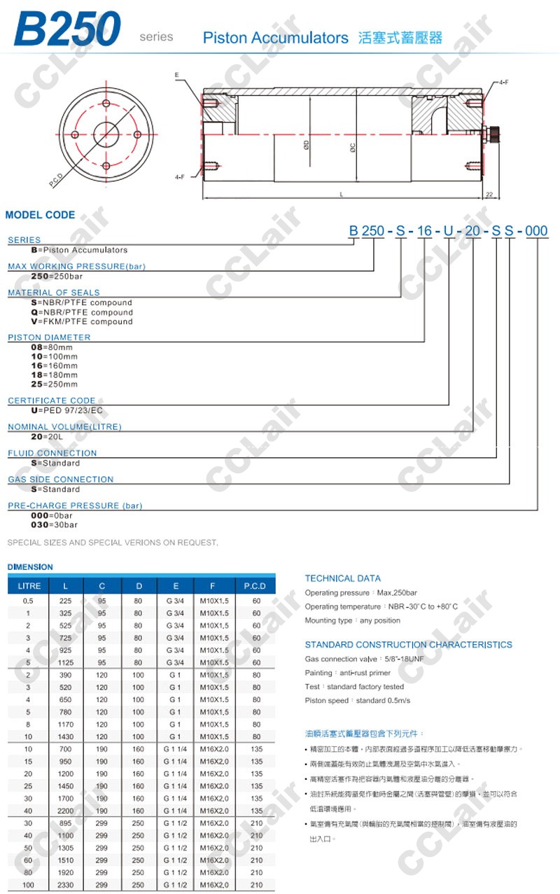 B250-S,B250-V,B250-Q,B250-S-08-U-20-SS-000,B250-V-10-U-20-SS-030,ASHUN油順活塞式蓄能器