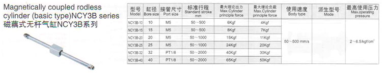 NCY3B-10,NCY3B-15,NCY3B-20,NCY3B-25,NCY3B-32,NCY3B-40,磁藕式無桿氣缸