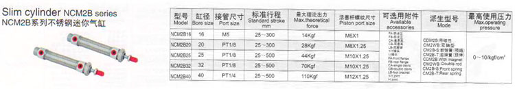 NCM2B16,NCM2B20,NCM2B25,NCM2B32,NCM2B40,不銹鋼迷你氣缸