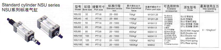 NSU32,NSU40,NSU50,NSU63,NSU80,NSU100,NSU125,NSU160,標(biāo)準(zhǔn)氣缸