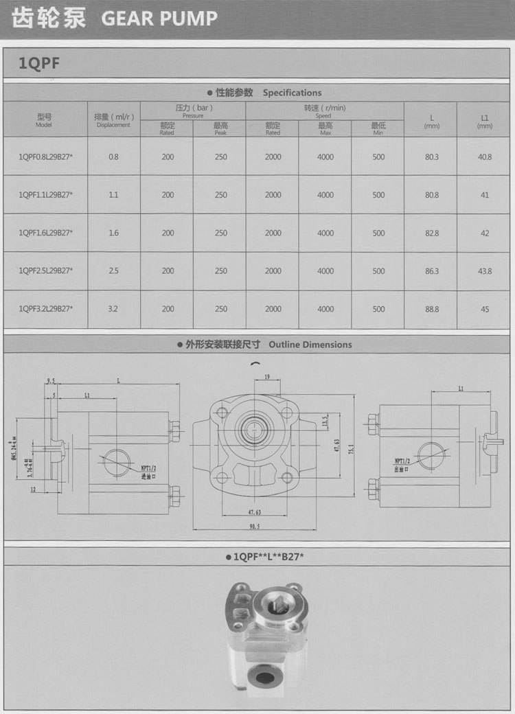 1QPF0.8L29B27,1QPF1.1L29B27,1QPF1.6L29B27,1QPF2.5L29B27,1QPF3.2L29B27,齒輪泵