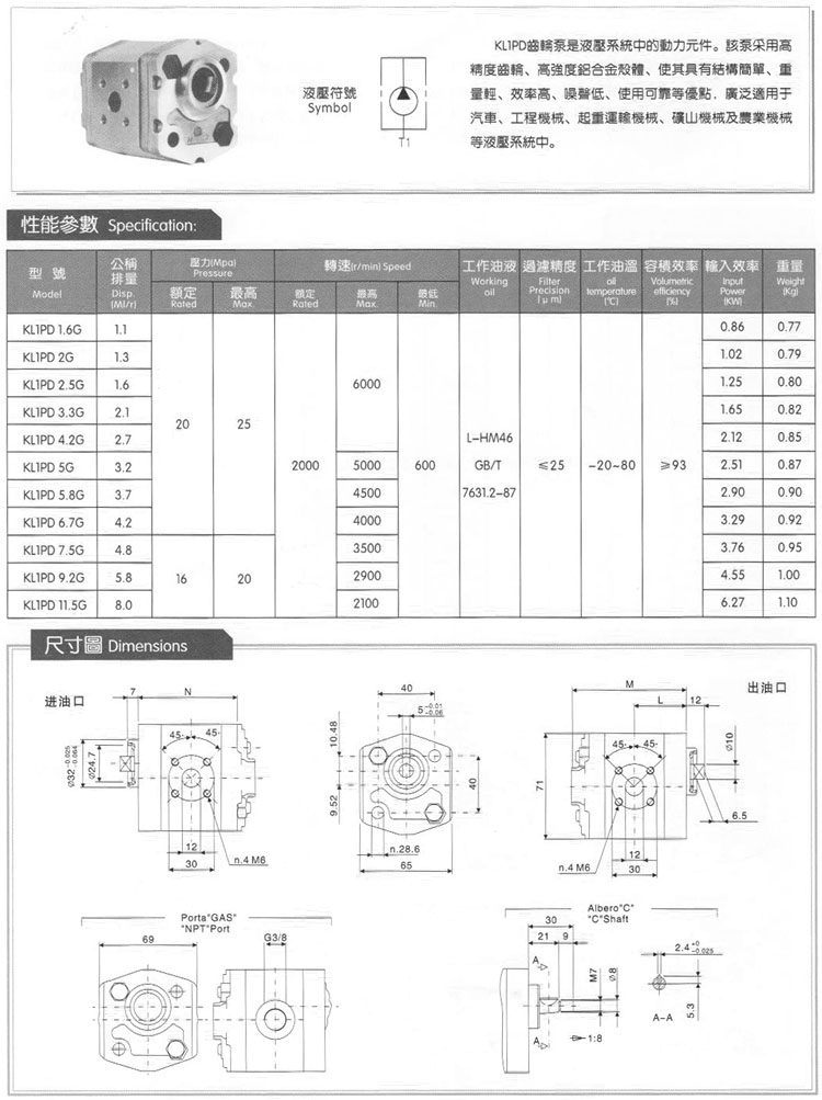 KL1PD1.6G,KL1PD2G,KL1PD2.5G,KL1PD3.3G,KL1PD4.2G,KL1PD5G,KL1PD5.8G,高壓齒輪油泵 |
