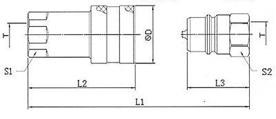 | 昌林液壓 | 國(guó)際標(biāo)準(zhǔn) | L1 | L2 | L3 | ØD | S1 | S2 | T | 最大工作壓力 | 母接頭編號(hào) | 公接頭編號(hào) |