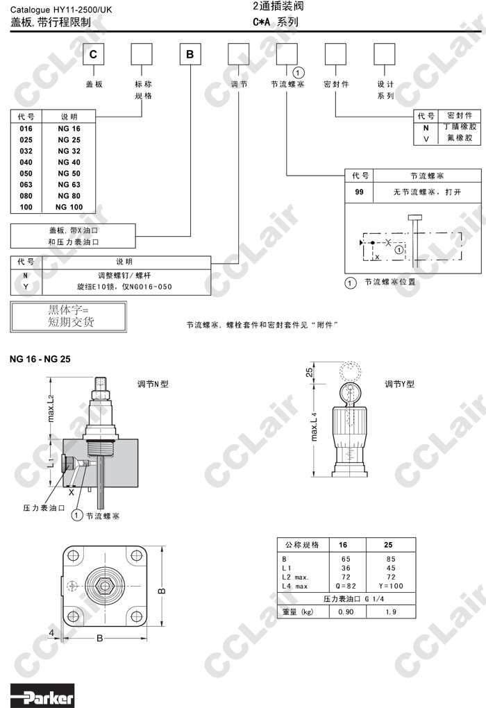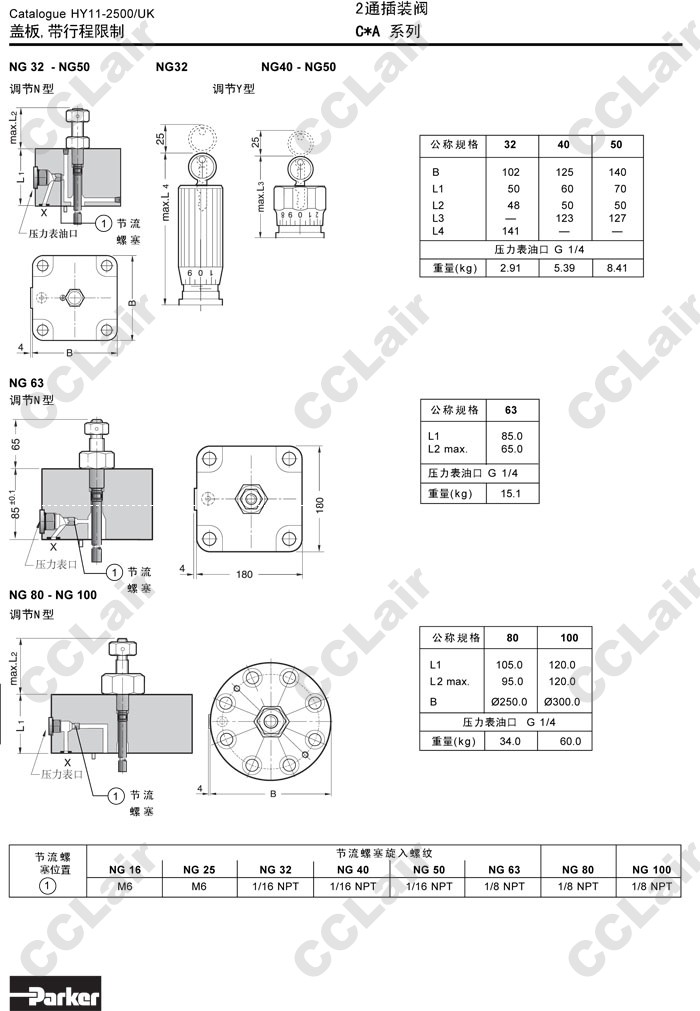 C016B,C025B,C032B,C040B,C050B,C063B,C080B,C100B,C016BN99N,C016BY99N,Parker2通插裝閥蓋板 |