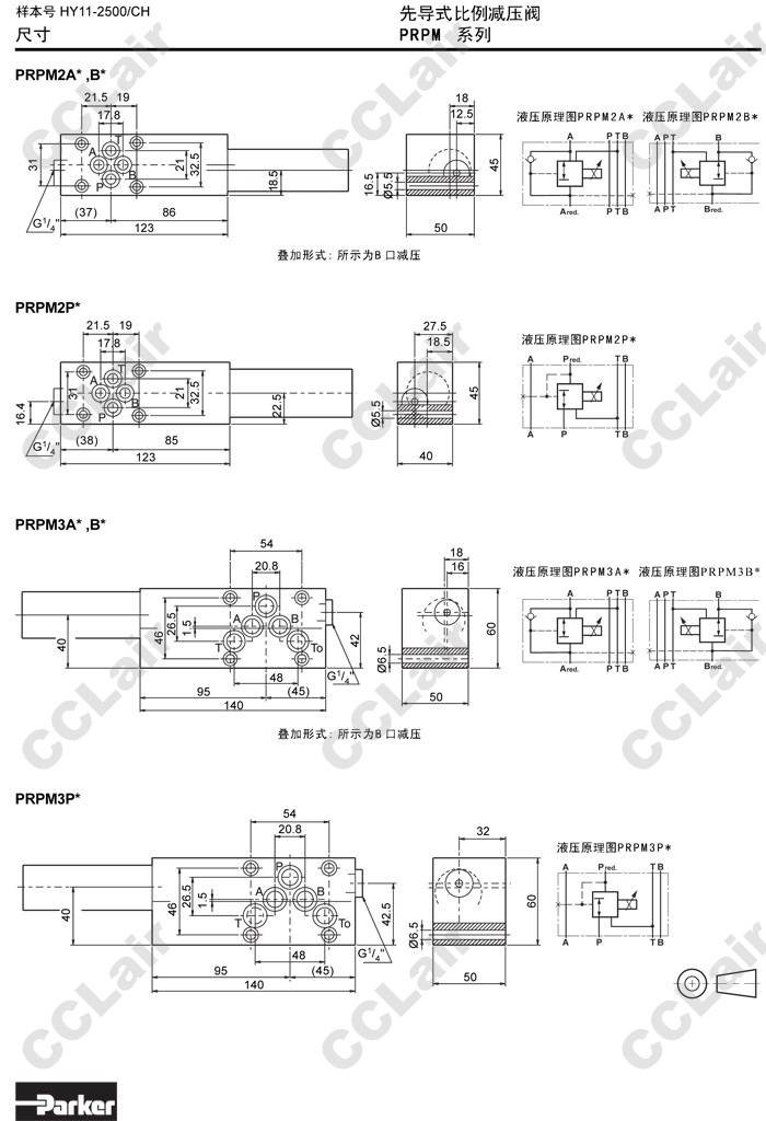 PRPM2AA10K,PRPM2BB10K,PRPM2PP10K,PRPM3AA10K,PRPM3BB10K,PRPM3PP10K,Parker先導(dǎo)式比例減壓閥