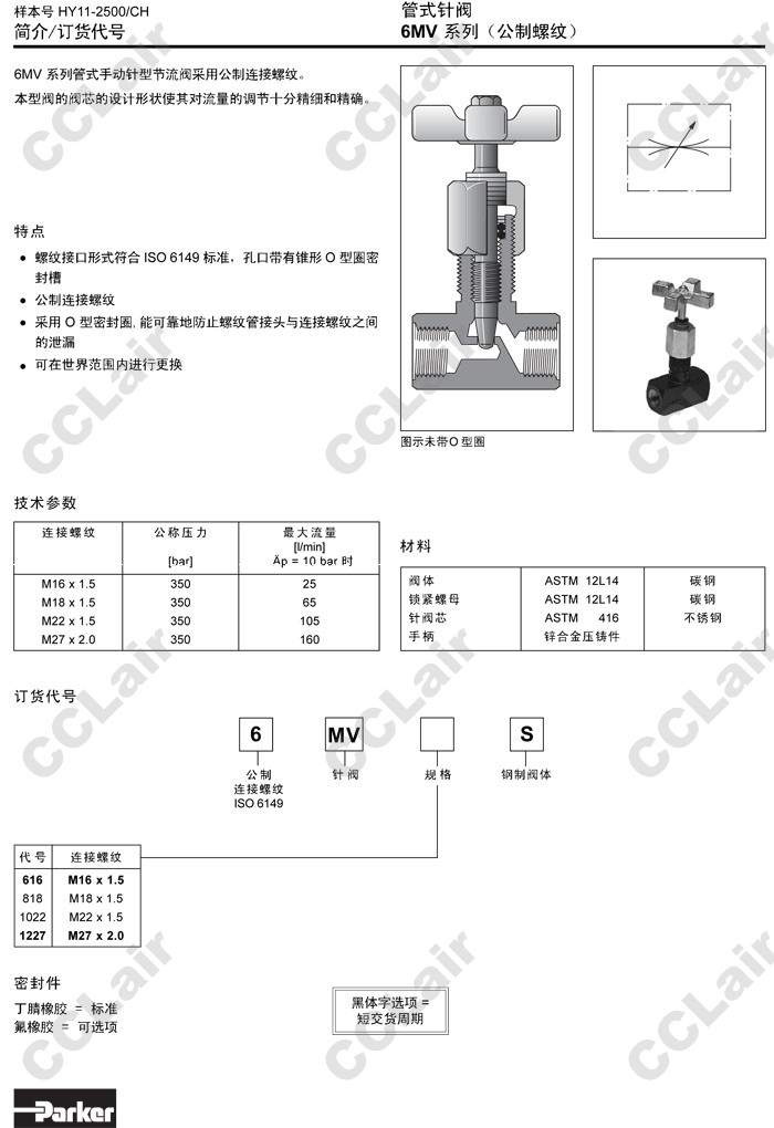 6MV616S,6MV818S,6MV1022S,6MV1227S,Parker管式針閥