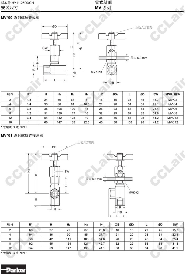 MV200,MV400,MV600,MV800,MV261,MV461,MV661,MV861,MV1261,MV200S,MV261S,Parker管式針閥