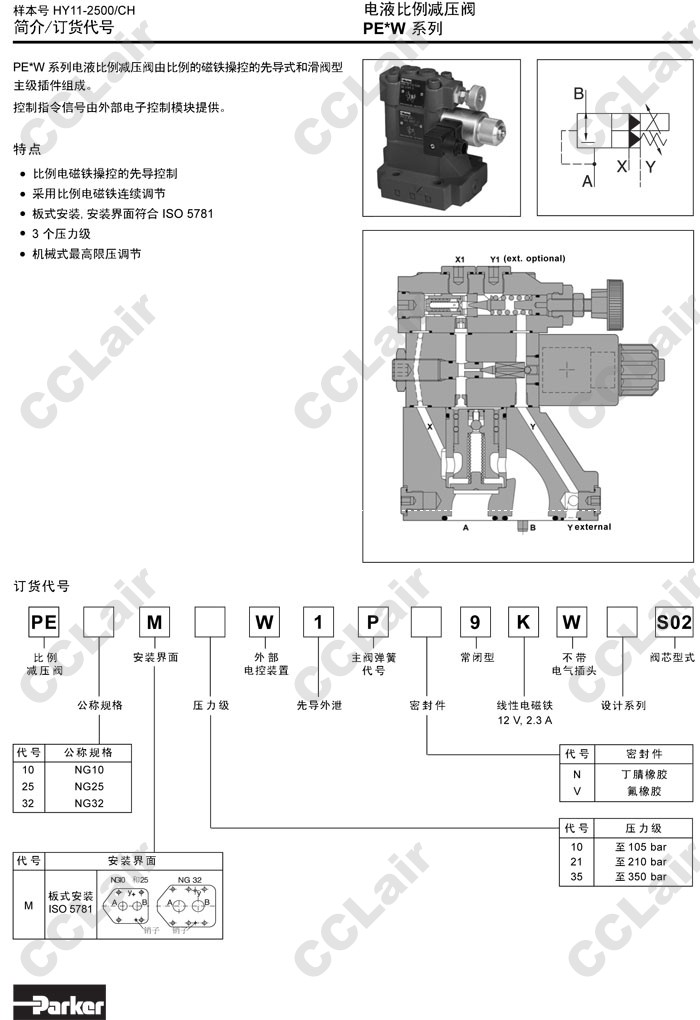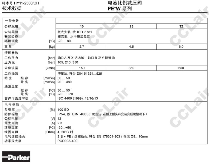 PE10M10W1PN9KW,PE25M10W1PN9KW,PE32M10W1PN9KW,PE10M10W1PV9KW,PE25M10W1PV9KW,Parker電液比例減壓閥