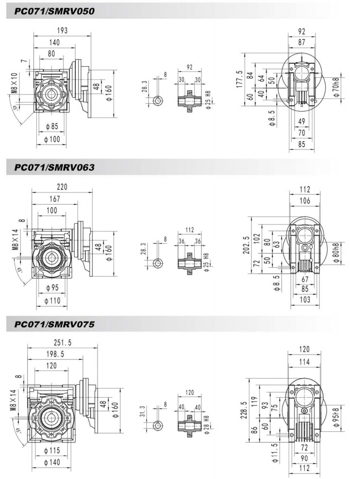 PC063-SMRV040,PC071-SMRV090,PC080-SMRV130,PC090-SMRV110,斜齒蝸輪減速器