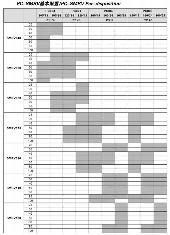 PC063-SMRV040,PC071-SMRV090,PC080-SMRV130,PC090-SMRV110,