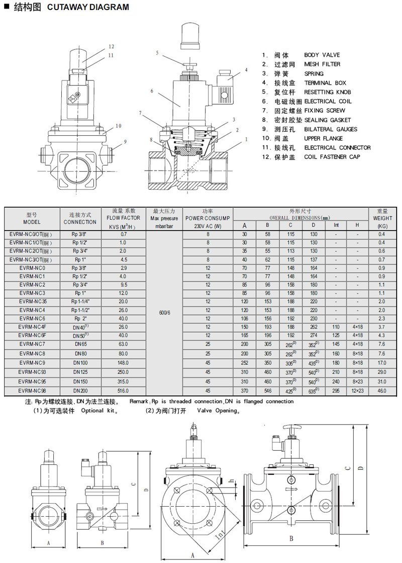 EVRM-NC0/OT,EVRM-NC1/OT,EVRM-NC2/OT,EVRM-NC3/OT,EVRM-NC4,elektrogas燃?xì)饩o急切斷閥