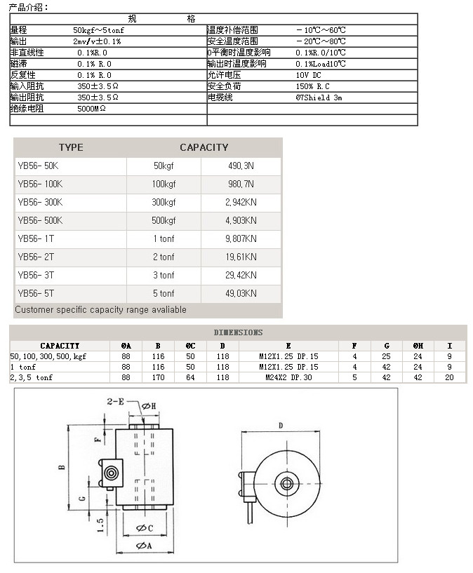 YB56-50K,YB56-100K,YB56-300K,YB56-500K,YB56-1T,YB56-2T,setech稱重傳感器