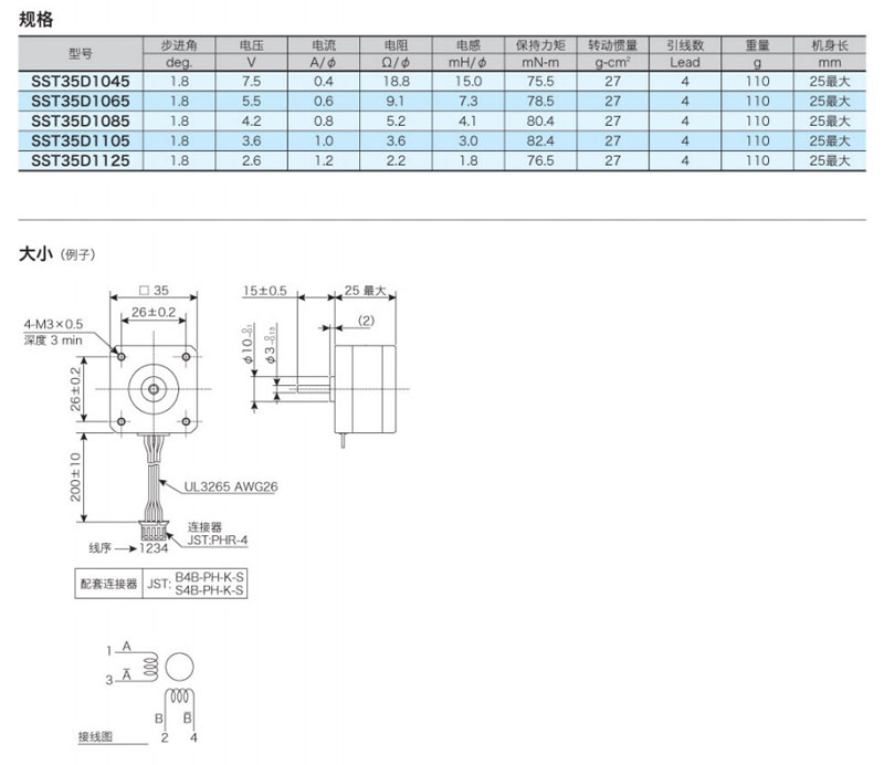 SST35D1045,SST35D1065,SST35D1085,SST35D1105,SST35D1125,兩相混合步進(jìn)馬達(dá)