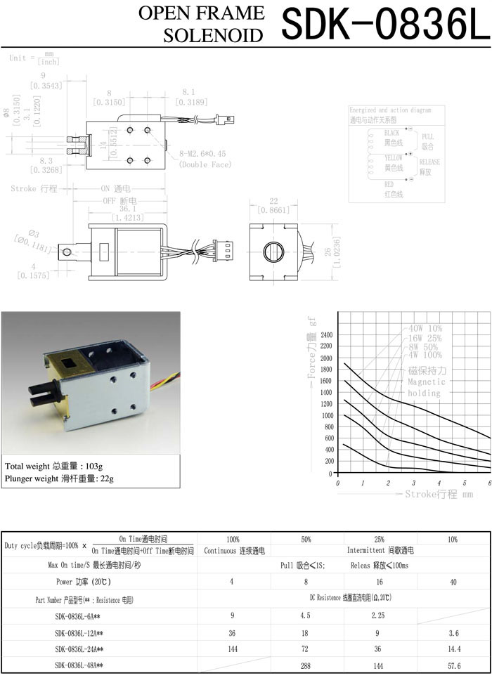 SDK-0836L-6A,SDK-0836L-12A,SDK-0836L-24A,SDK-0836L-48A,直動電磁鐵