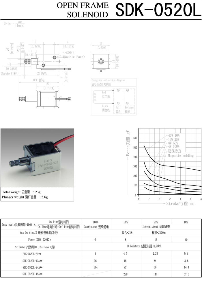 SDK-0520L-6A,SDK-0520L-12A,SDK-0520L-24A,SDK-0520L-48A,直動(dòng)電磁鐵