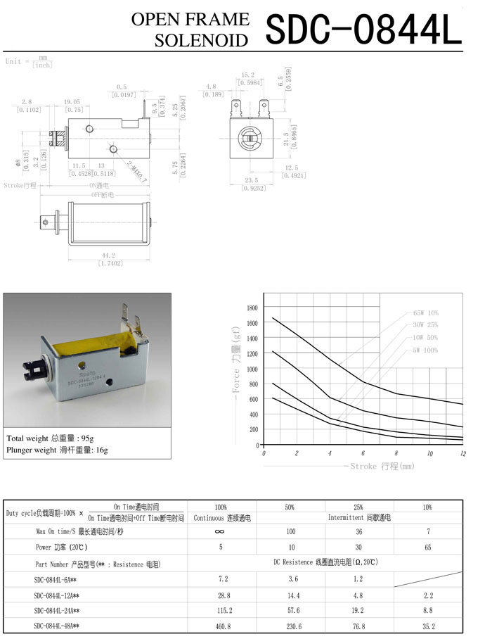 SDC-0844L-6A,SDC-0844L-12A,SDC-0844L-24A,SDC-0844L-48A,直動電磁鐵 |
