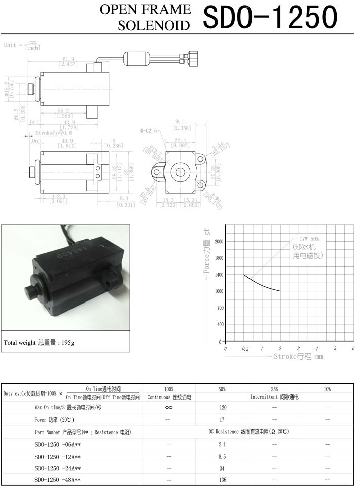 SDO-1250-06A,SDO-1250-12A,SDO-1250-24A,SDO-1250-48A,直動電磁鐵 |