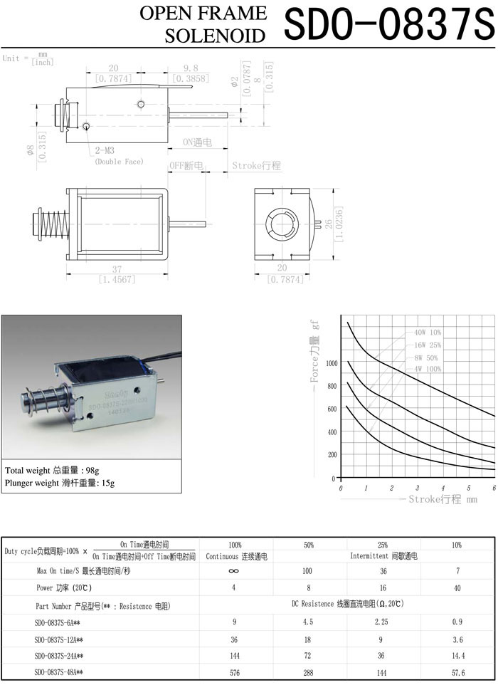 SDO-0837S-6A,SDO-0837S-12A,SDO-0837S-24A,SDO-0837S-48A,直動電磁鐵 |