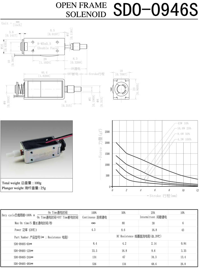 SDO-0946S-6A,SDO-0946S-12A,SDO-0946S-24A,SDO-0946S-48A,直動(dòng)電磁鐵